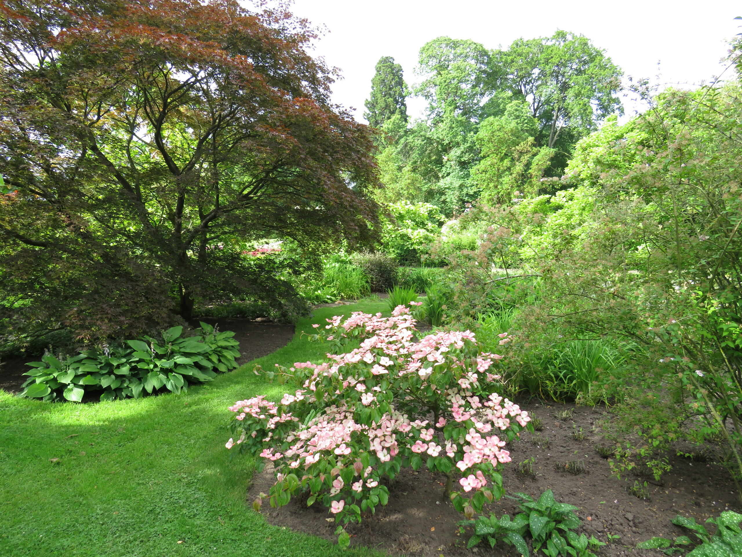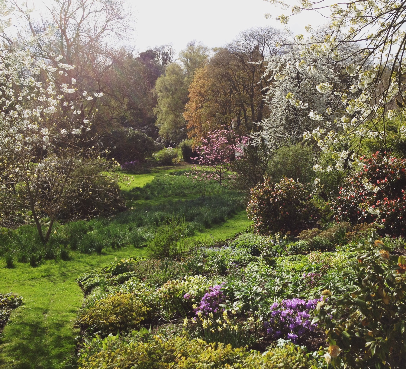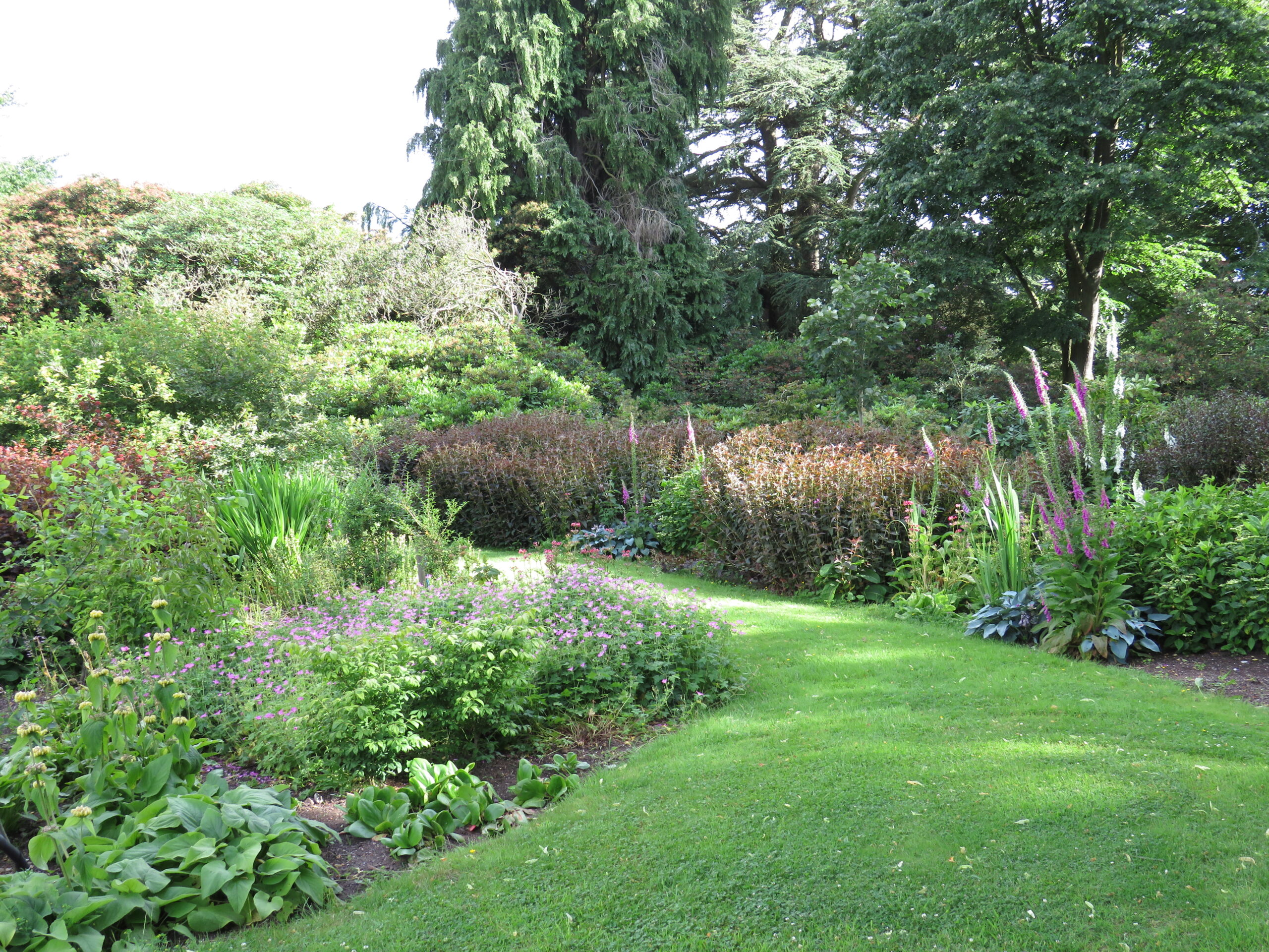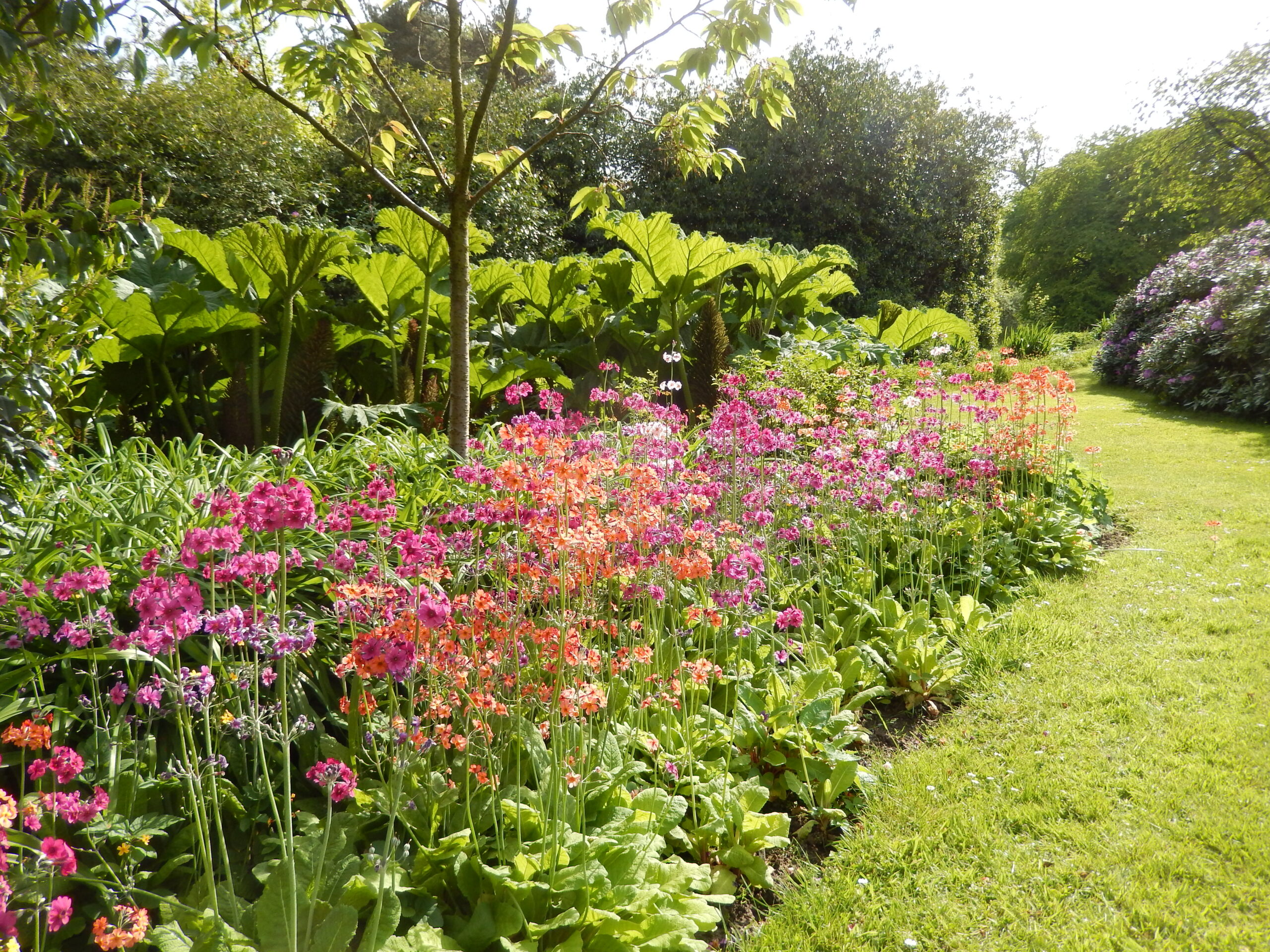 This area has its own microclimate which can be quite noticeable in the early season. In the early 1960’s this area of the garden was cleared of a jungle of Laurels, Rhododendron ponticum, bamboos and dead trees, with beds being laid out in a relaxed style.