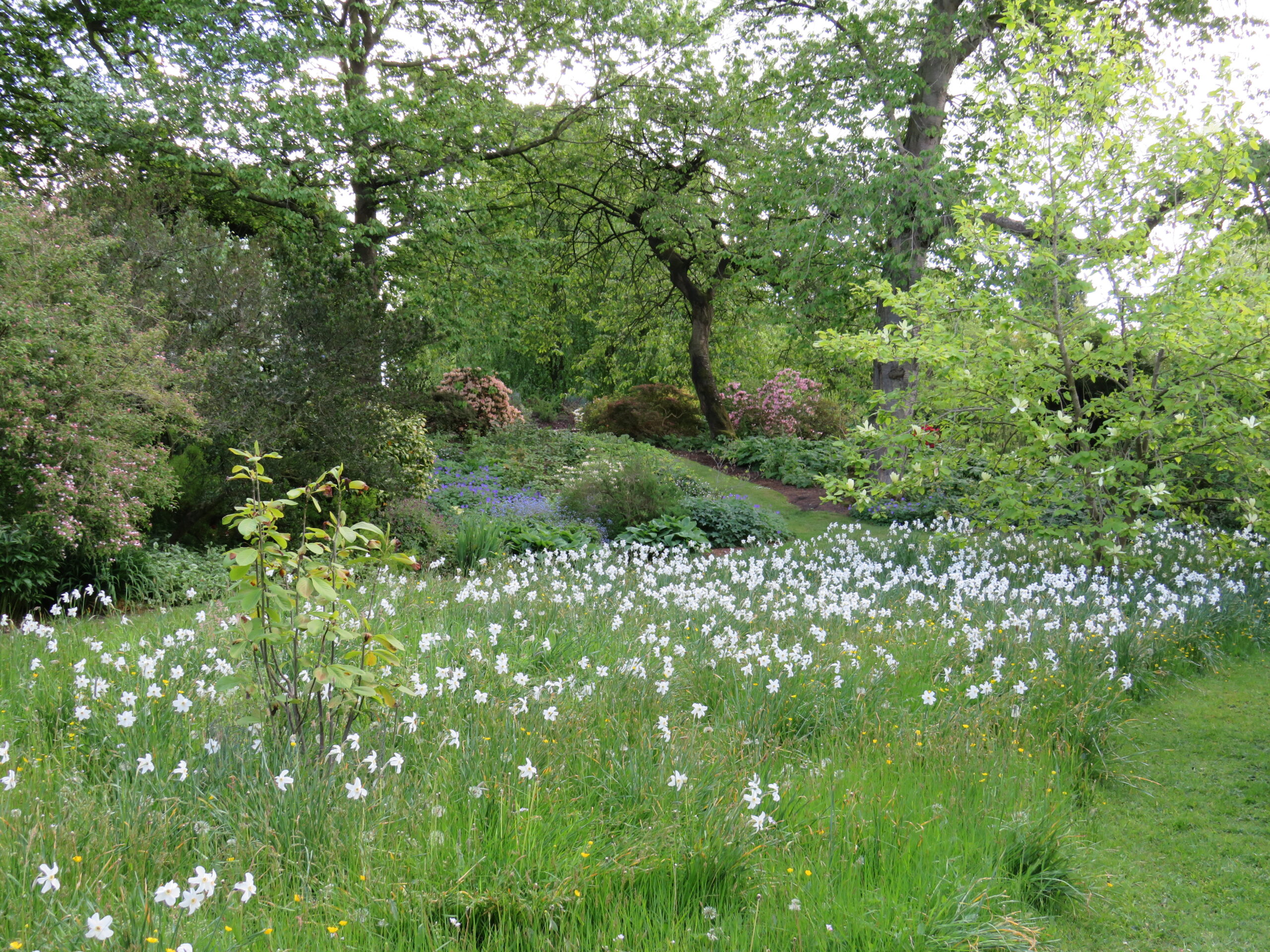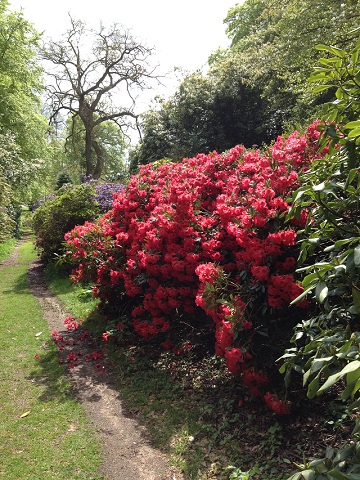 The area was cleared of dangerous old trees, and untidy undergrowth in the 1980’s, and with the help of the countryside commission extensive planting of indigenous trees was undertaken. This has made for a splendid background for a fine collection of more ornamental trees and shrubs including; Nothofagus, Camellia, Magnolia, Cornus and of course Rhododendrons.